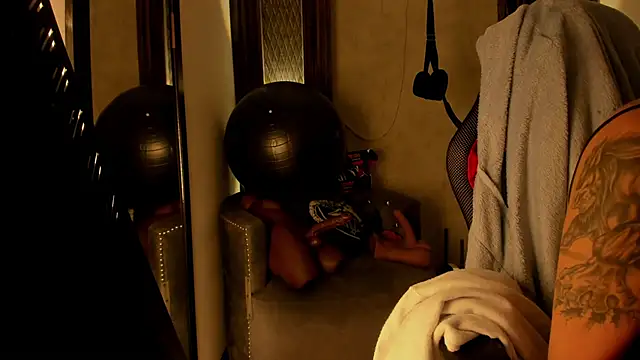 selene_red_: harness for back and arms + 3 balls gag: